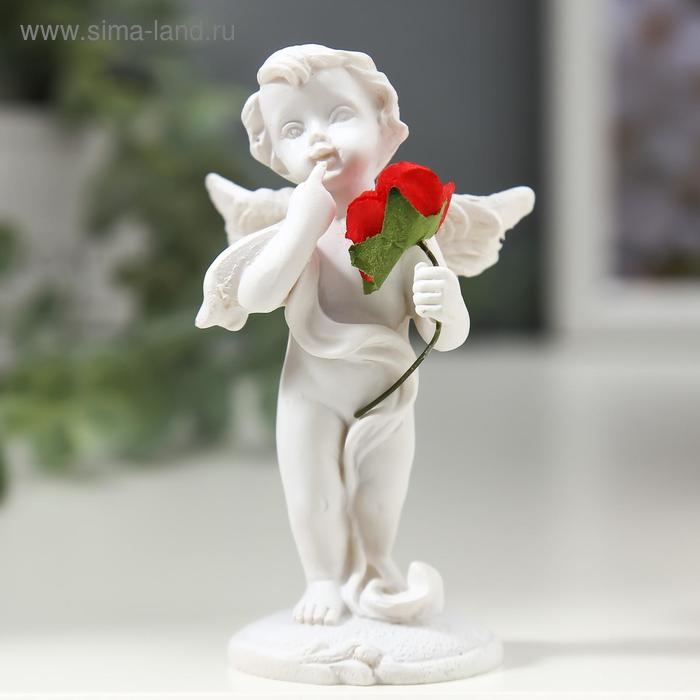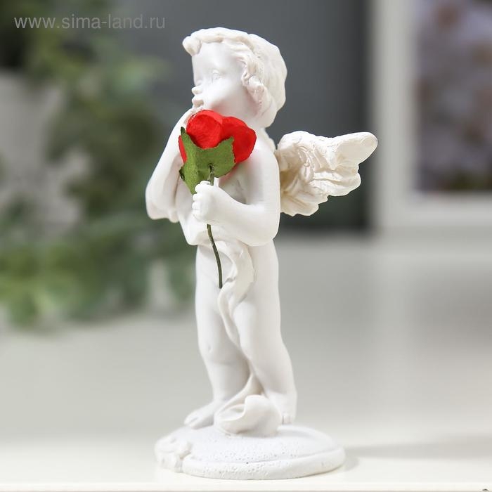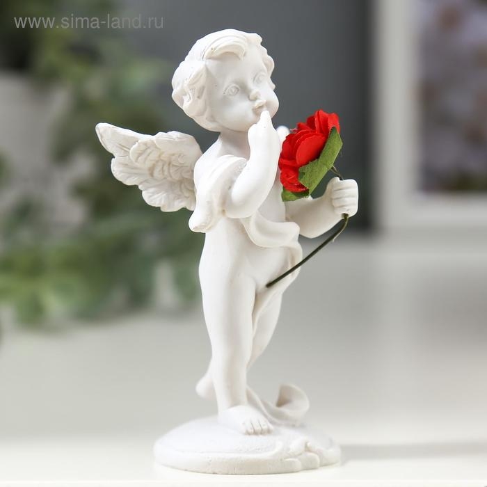 Фигурка полистоун «Ангелочек с красной розой», 8×4.5×3.5 см