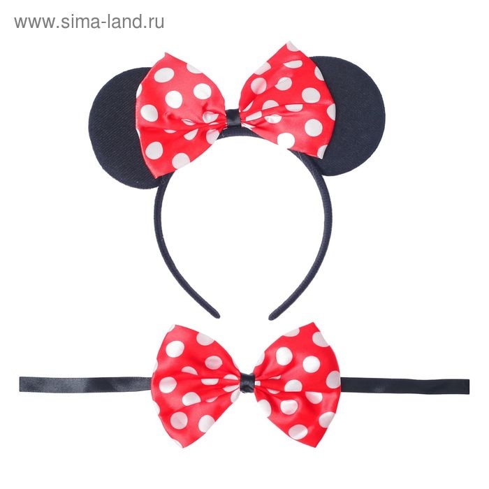 Карнавальный набор «Ушки», 2 предмета: ободок, бабочка, цвет красный