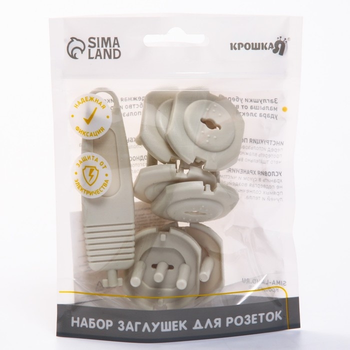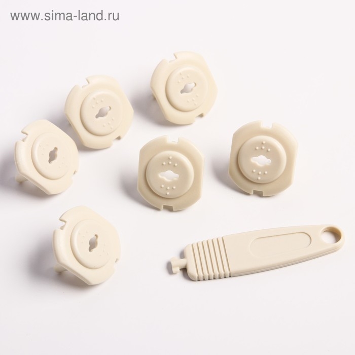 Заглушка для розетки, с ключом, цвет бежевый, набор 6 шт., Крошка Я