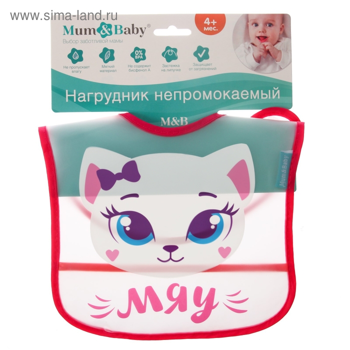 Нагрудник для кормления «Котёнок» непромокаемый на липучке, с карманом, МИКС