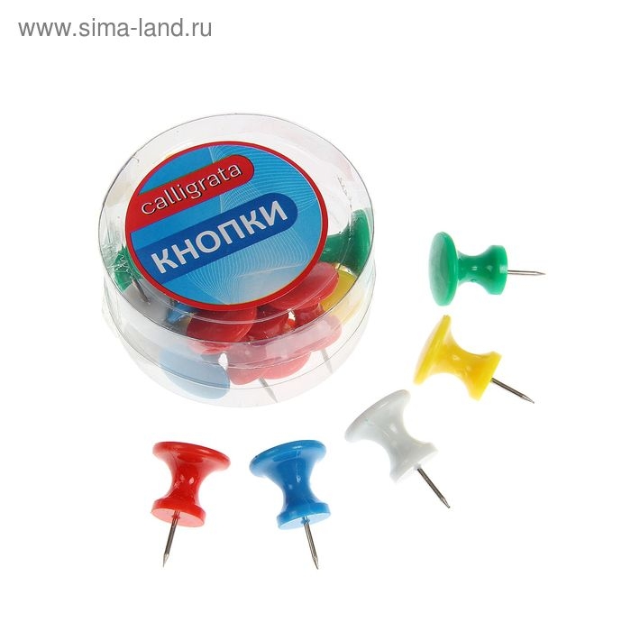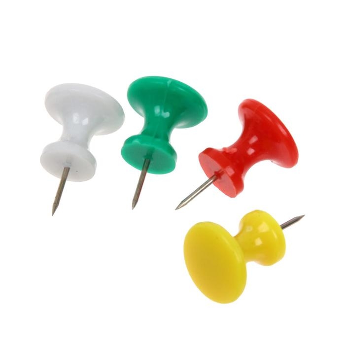 Кнопки канцелярские 10 мм с цветной пластиковой головкой, в пластиковой баночке 100 штук