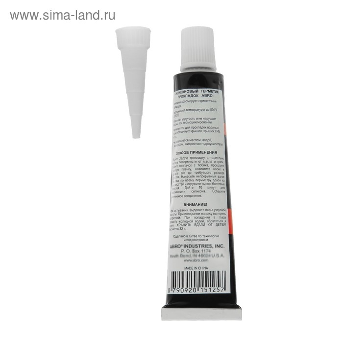 Герметик прокладок ABRO черный Китай 32 гр 12-AB-CH-32R обеспечивает надежную герметизацию соединений, ремонтирует и заменяет штатные прокладки из резины и силикона. Продукт используют во время монтажа деталей, работающих при повышенной температуре. Состав образует прочный клеевой шов, который не разрушается под действием масла, воды и антифриза.
