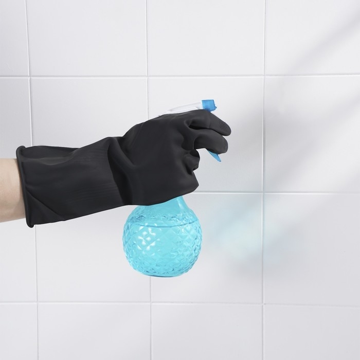 Перчатки хозяйственные плотные Доляна, размер L, резиновые, чёрные