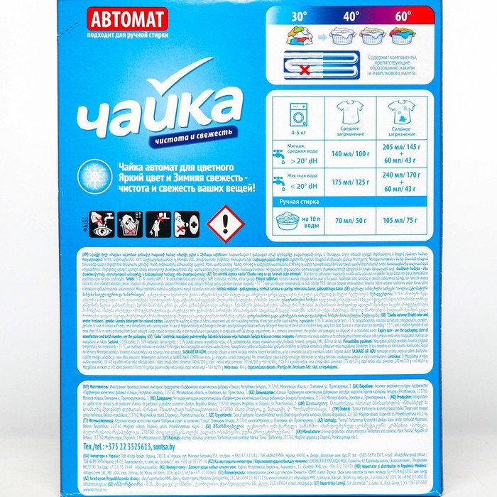 Способ применения: 150 г. стирального порошка на 4-5 кг. белья.