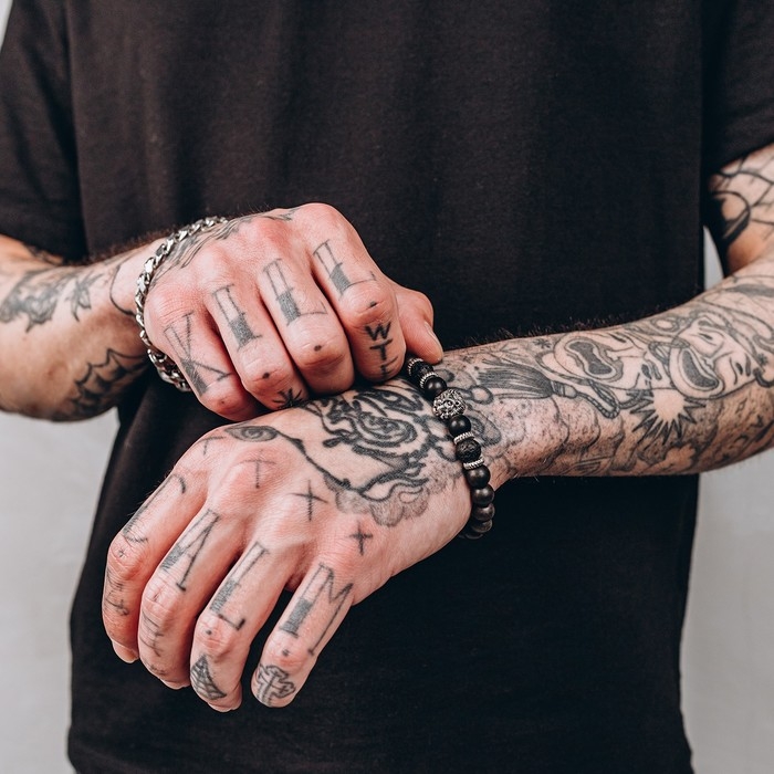 Браслет мужской «Череп» с бусинами на нити, цвет серый