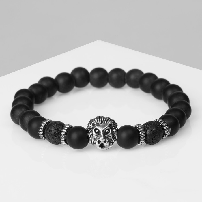 Браслет унисекс «Лава» лев, цвет чёрный с серебром, d=7 см