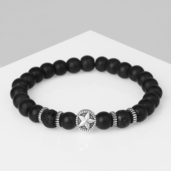 Браслет унисекс «Стиль успеха» звезда, цвет чёрный в чернёном серебре, d=7 см