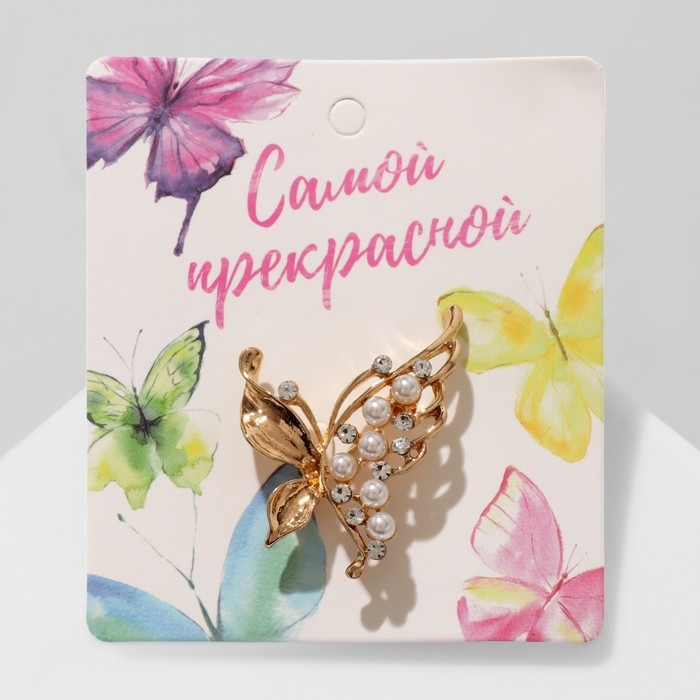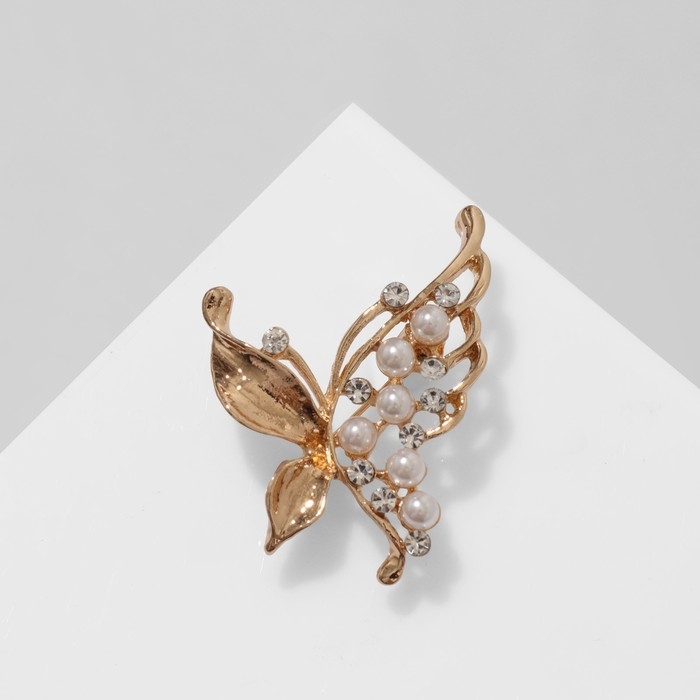 Брошь «Бабочка» с жемчужным крылом, цвет белый в золоте