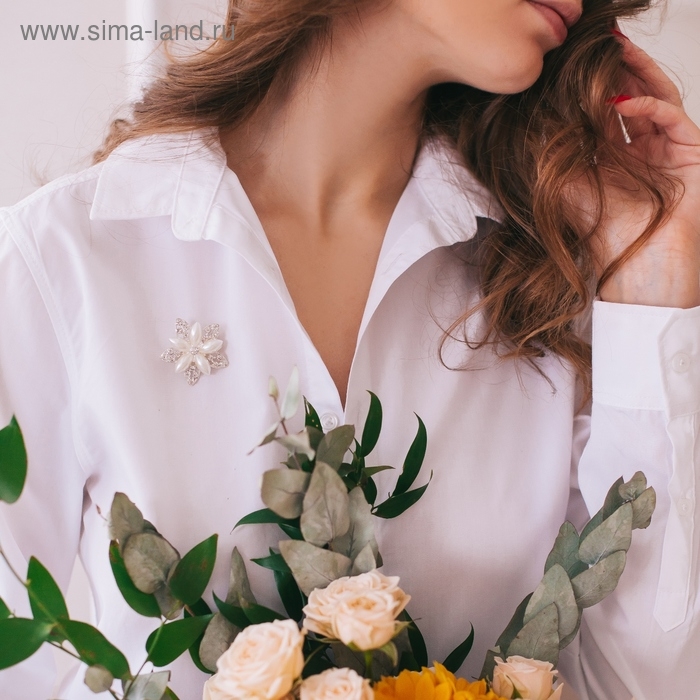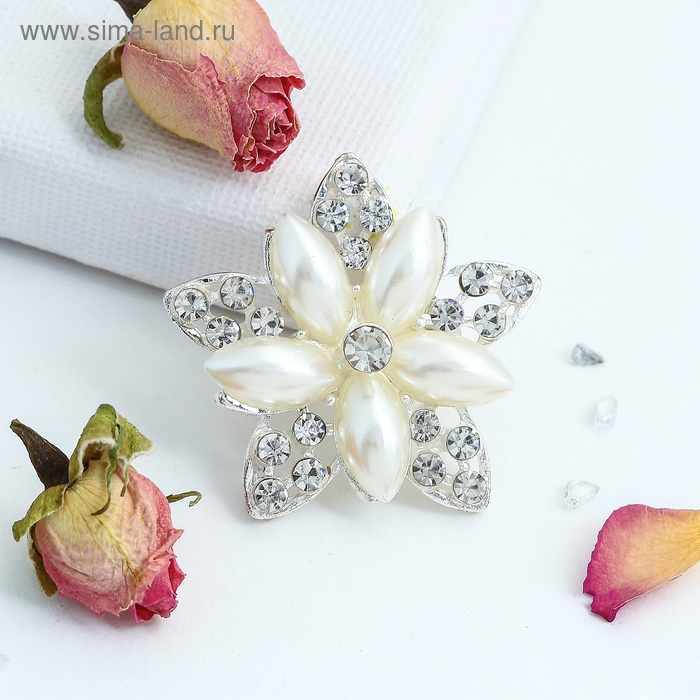 Брошь «Букет с жемчугом», цвет белый в серебре