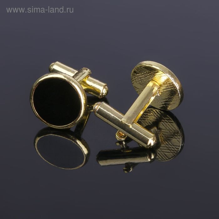Запонки металлические «Круг» с эмалью , цвет чёрный в золоте