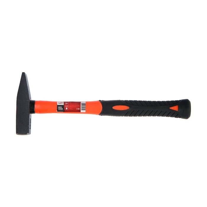 Молоток слесарный ЛОМ, квадратный боек, фиберглассовая обрезиненная рукоятка, 600 г