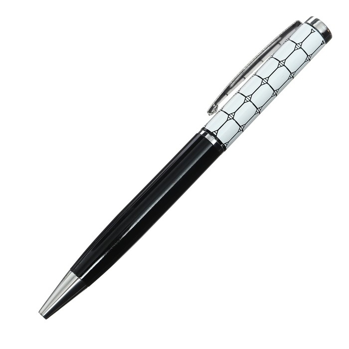 Ручка подарочная, шариковая "Пунктир" в пластиковом футляре, поворотная, чёрная с серебристыми вставками