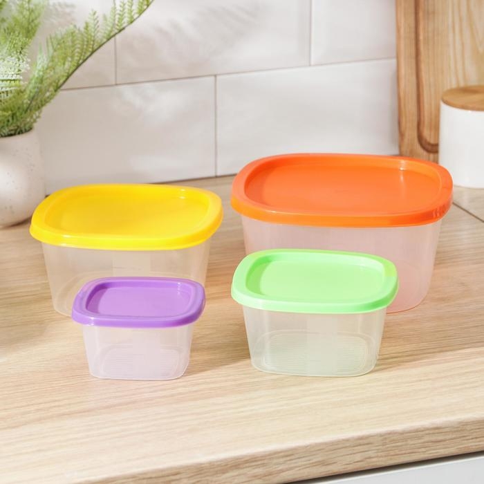 Набор пищевых контейнеров «BioFresh», 4 шт: 0,23 л, 0,5 л, 0,9 л, 1,55 л, прозрачные, крышки микс