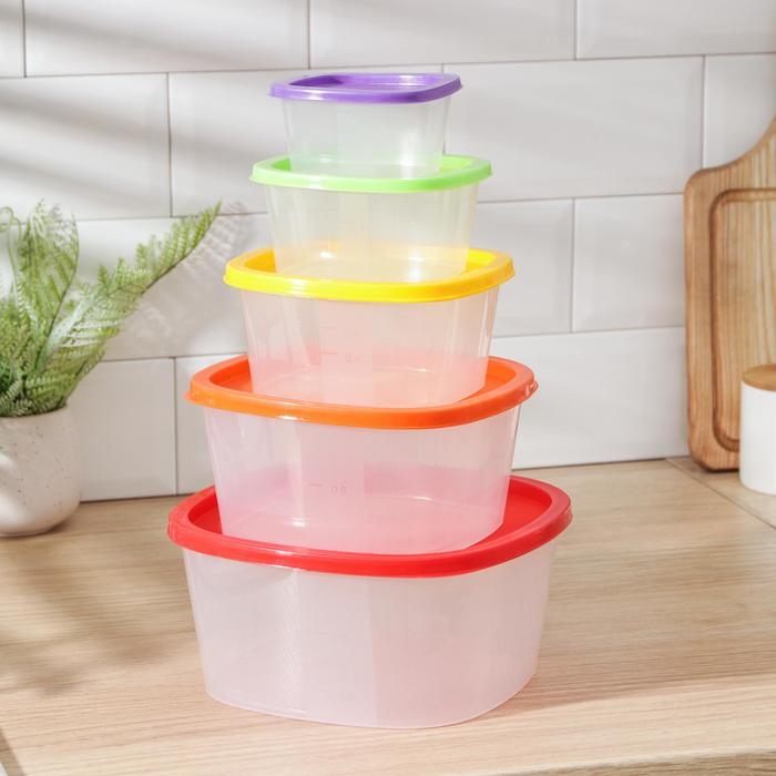 Набор пищевых контейнеров «BioFresh», 5 шт: 0,23 л, 0,5 л, 0,9 л, 1,55 л, 2,65 л, прозрачные, крышки микс