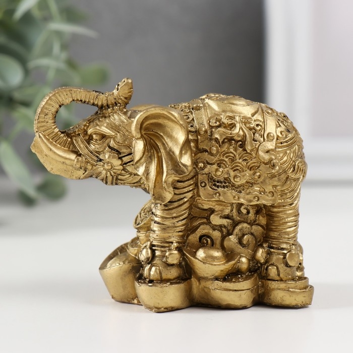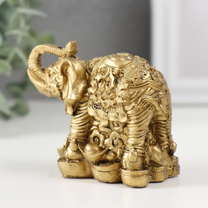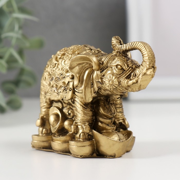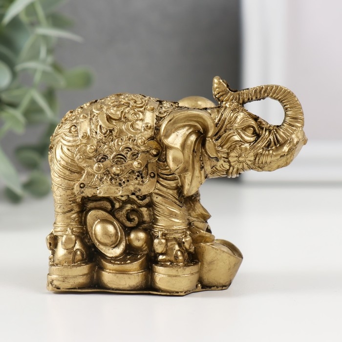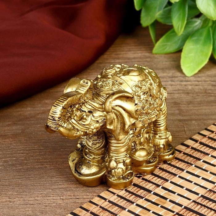 Нэцкэ полистоун "Слон на монетах" бронза 6,7х8,2х4,6 см