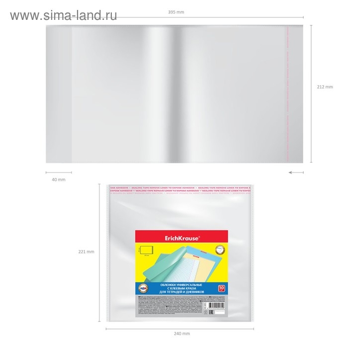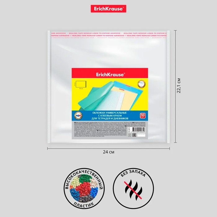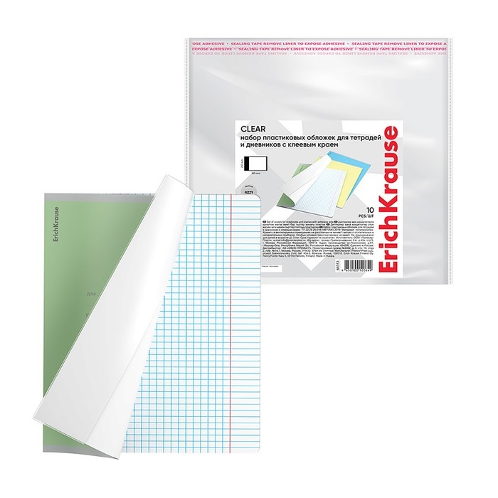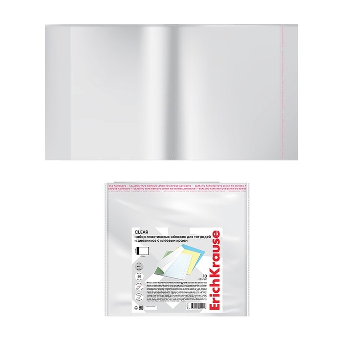 Набор обложек ПП 10 шт, 212 х 395 мм, 50 мкм, ErichKrause "Fizzy Clear", для тетрадей и дневников, с клеевым краем, с тиснением