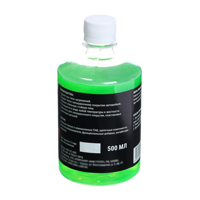 -придаёт блеск лакокрасочному покрытию автомобиля;образует обильную стойкую пену;