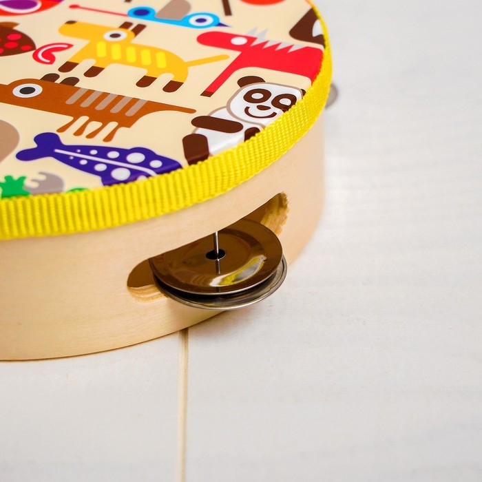 Яркий бубен с улыбчивыми персонажами — это первый шаг малыша в мире музыки. Он позволит ребёнку окунуться в процесс создания мелодий, нужно только встряхнуть игрушку.