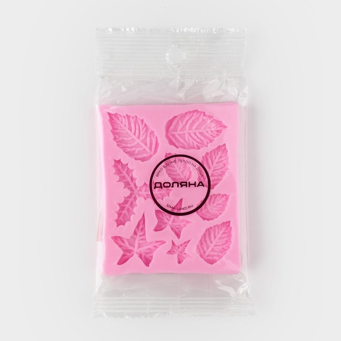 Молд для заливки Доляна «Листики», 10 ячеек, силикон, 9×7.2 см, розовый