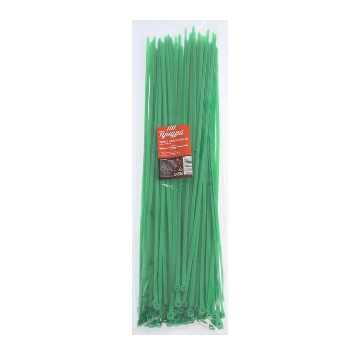 Хомут нейлоновый ТУНДРА krep, для стяжки, 4.8х400 мм, цвет зеленый, в упаковке 100 шт.