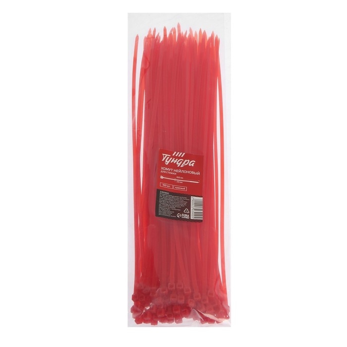 Хомут нейлоновый пластик ТУНДРА krep, для стяжки, 3.6х300 мм, цвет красный, в уп. 100 шт