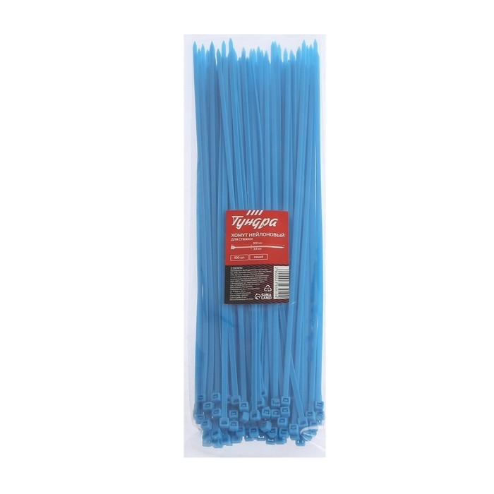 Хомут нейлоновый для стяжки, ТУНДРА, 3.6×300 мм, синий, 100 шт.