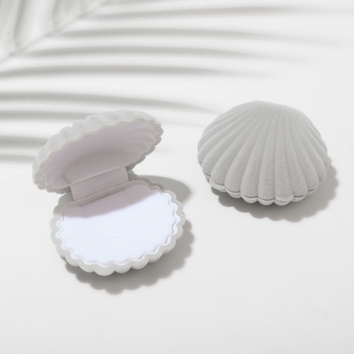 Футляр бархатный под кольцо «Ракушка», 6×5,5, цвет серый, вставка белая