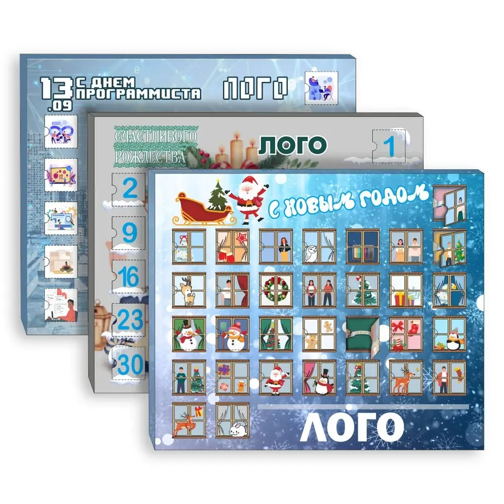 Набор из 31 плитки шоколада в коробке в виде адвент-календаря.