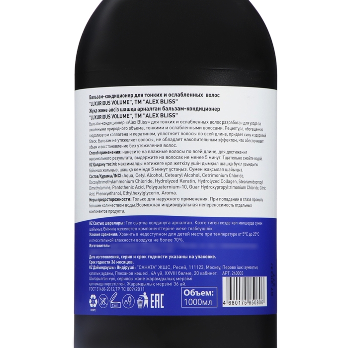 Бальзам-кондиционер Alex Bliss Роскошный объем создан на основе тщательно подобранных натуральных активных компонентов, ухаживающих за волосами.