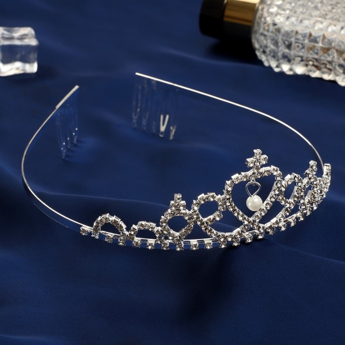 Диадема для волос "Феерия" сердце, h-4 см, серебро