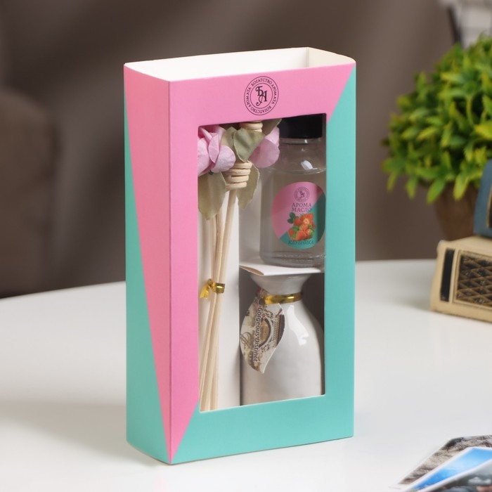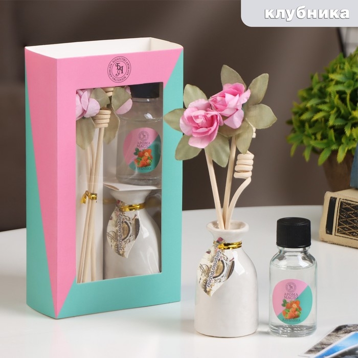 Набор подарочный с диффузором "Ваза с цветком" клубника, "Богатство Аромата"