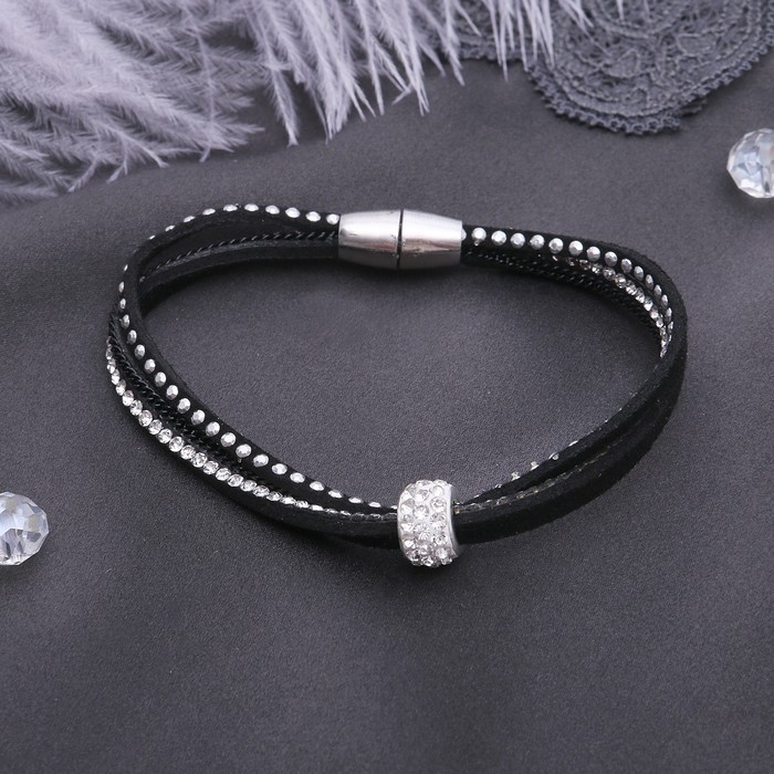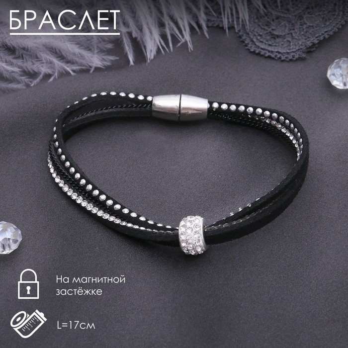 Браслет кожа «Шамбала», цвет чёрный в серебре, L=17 см