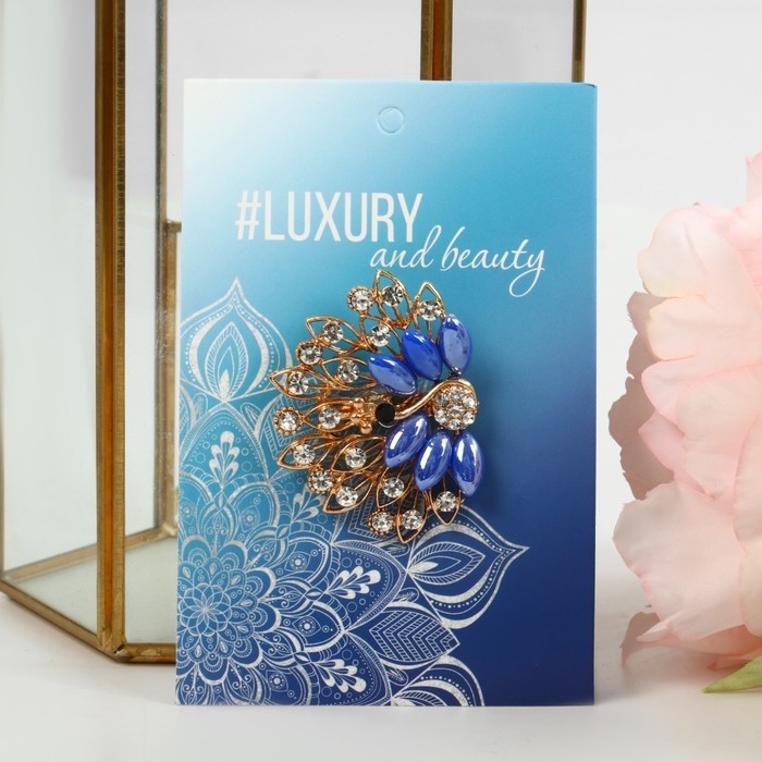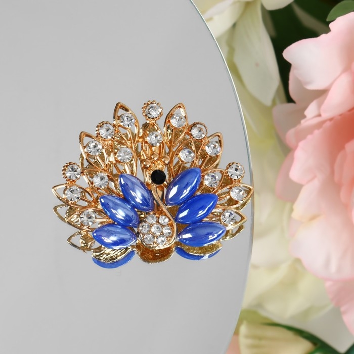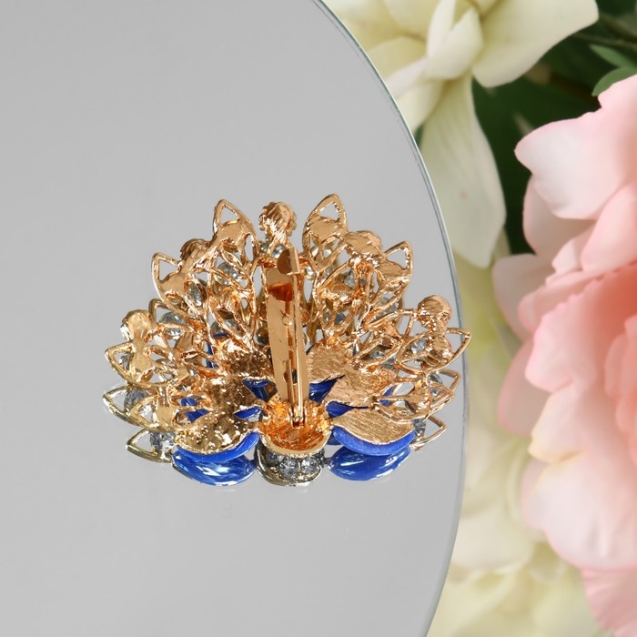 Брошь «Павлин» с пушистым хвостом, цвет синий в золоте