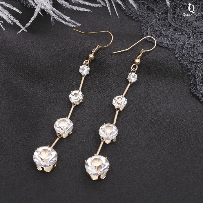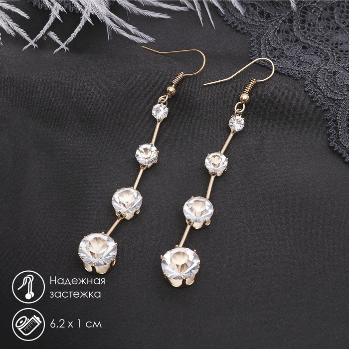 Серьги висячие со стразами «Капли» дорожка, цвет белый в золоте, 6,2 см
