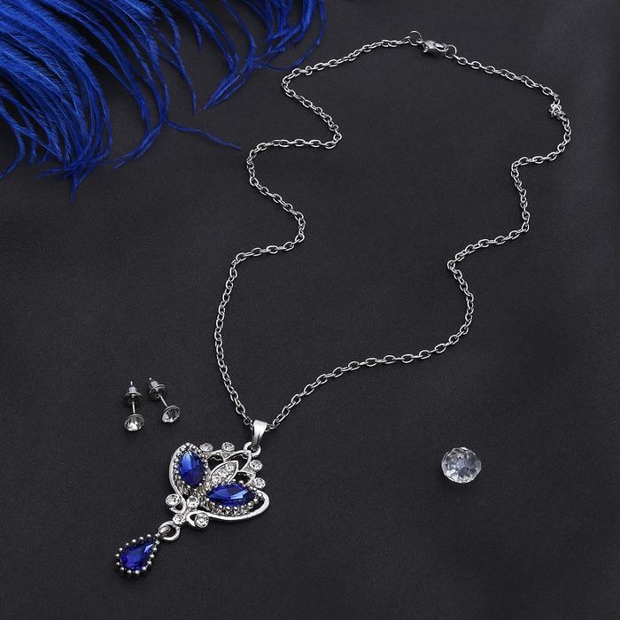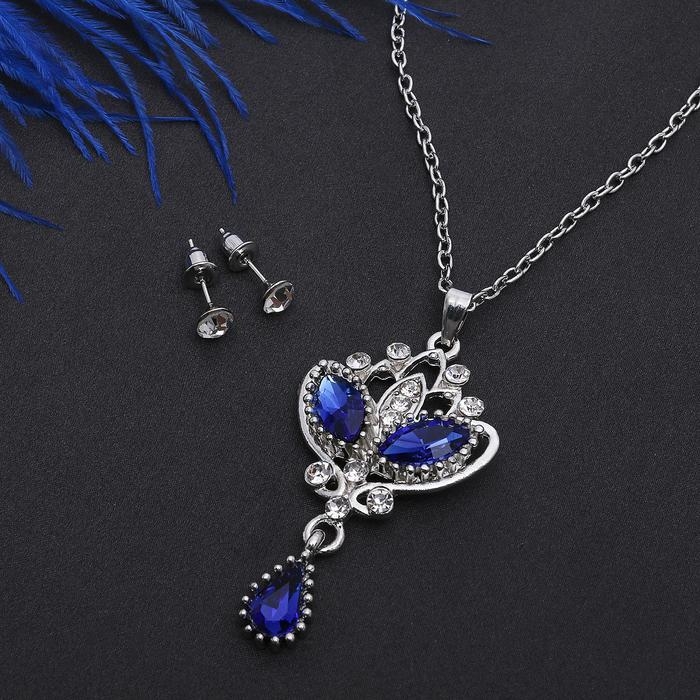 Гарнитур 2 предмета: серьги кулон «Ажур» Вивальди, цвет бело-синий в серебре, 50 см