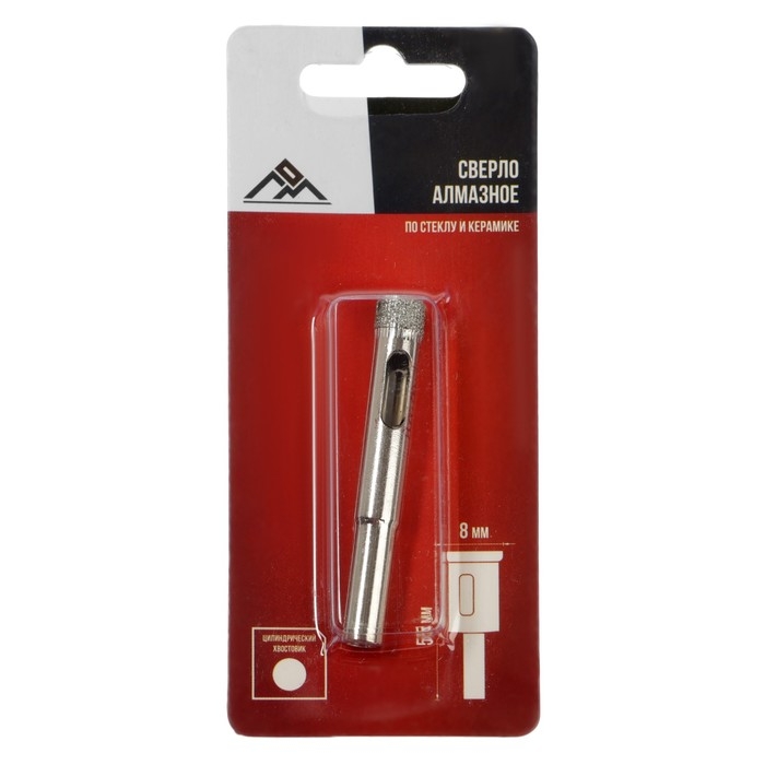 Сверло алмазное по стеклу и керамике ЛОМ, цилиндрический хвостовик, 8×55 мм