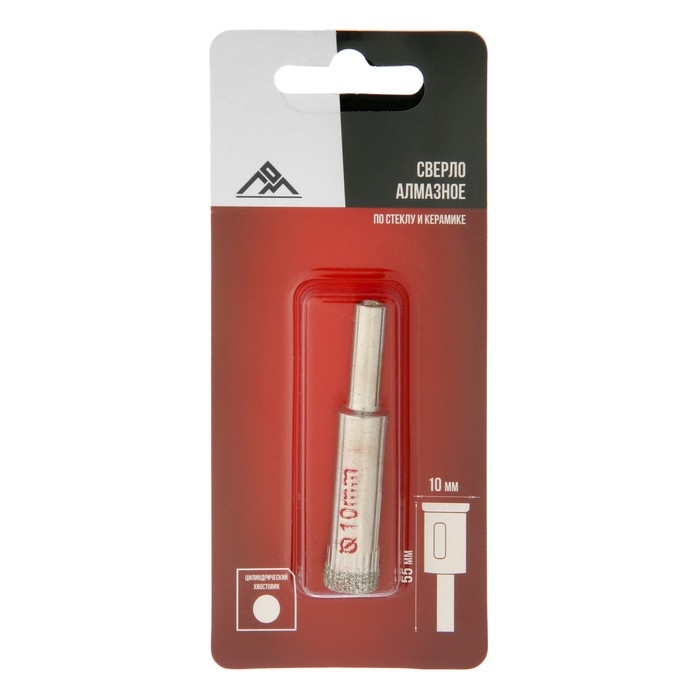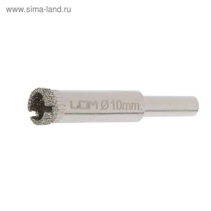 Сверло алмазное по стеклу и керамике ЛОМ, цилиндрический хвостовик, 10 х 55 мм