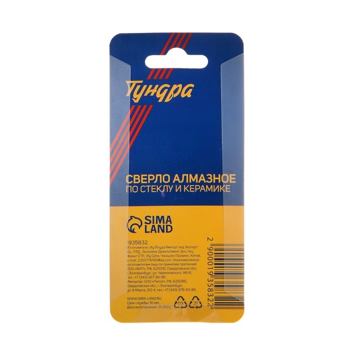 Сверло алмазное по стеклу и керамике с трехгранным хвостовиком ТУНДРА предназначено для совместного использования с дрелью.
