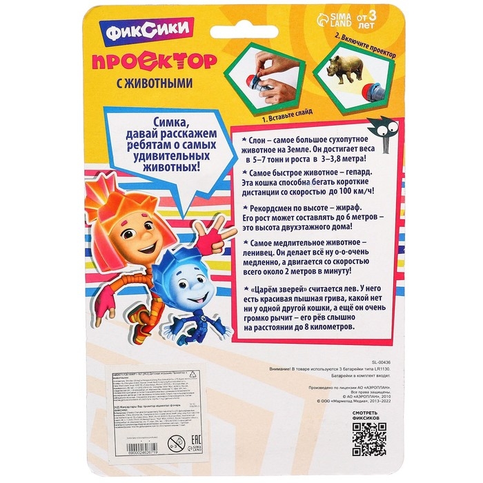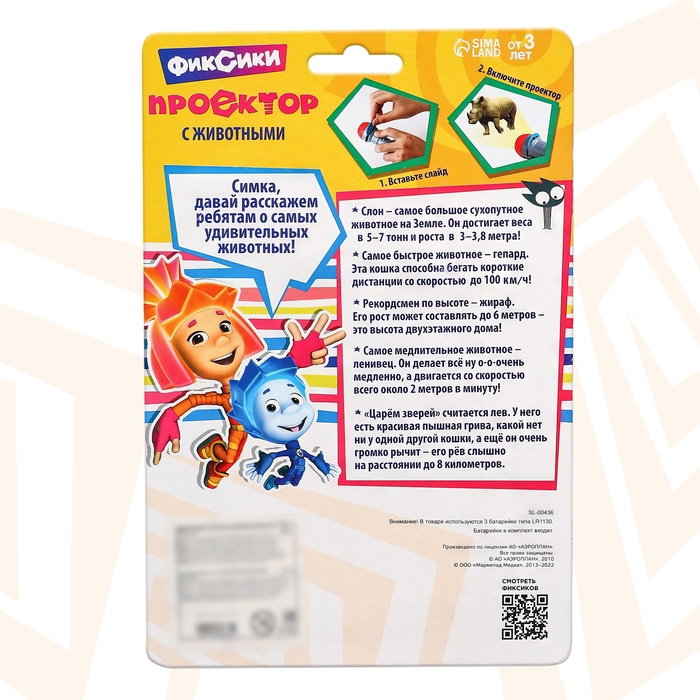 Проектор-фонарик с животными «Фиксики», батарейки в набор не входят