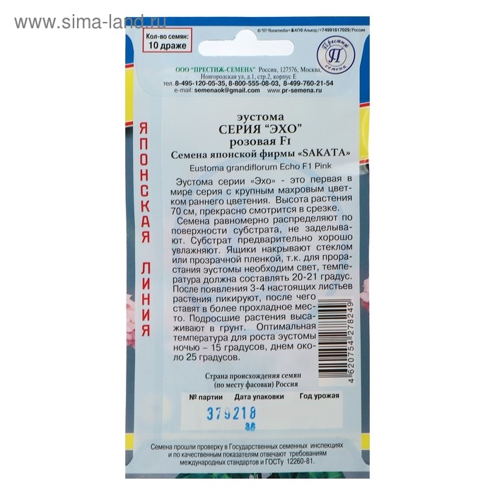 Семена цветов Эустома "Эхо" Розовая F1, О, драже 10 шт
