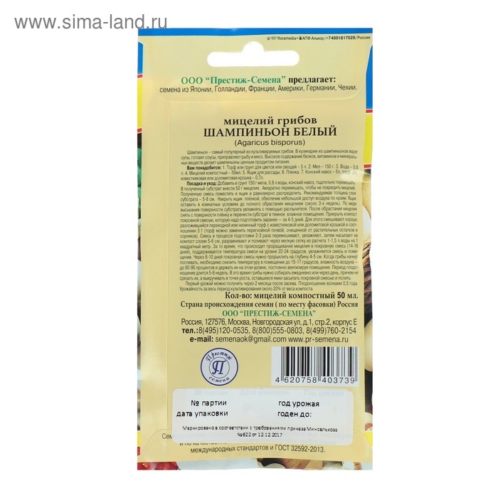 Семена Шампиньон "Бразильский", ц/п, на зерновом субстрате, 15 мл