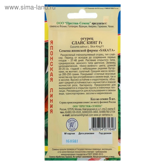 Семена Огурец Слайс Кинг F1, раннеспелый, партенокарпический, 5 шт