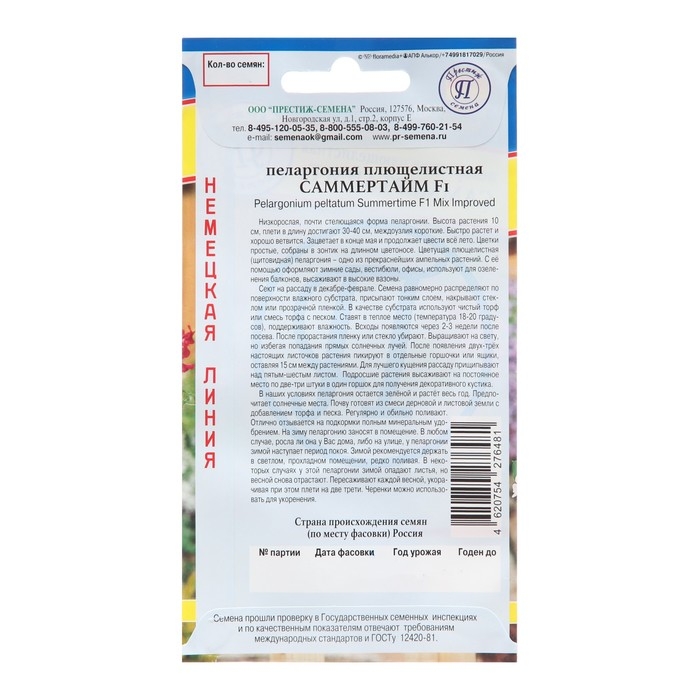 Семена комнатных цветов Пеларгония "Саммертайм", Смесь F1, 5 шт.