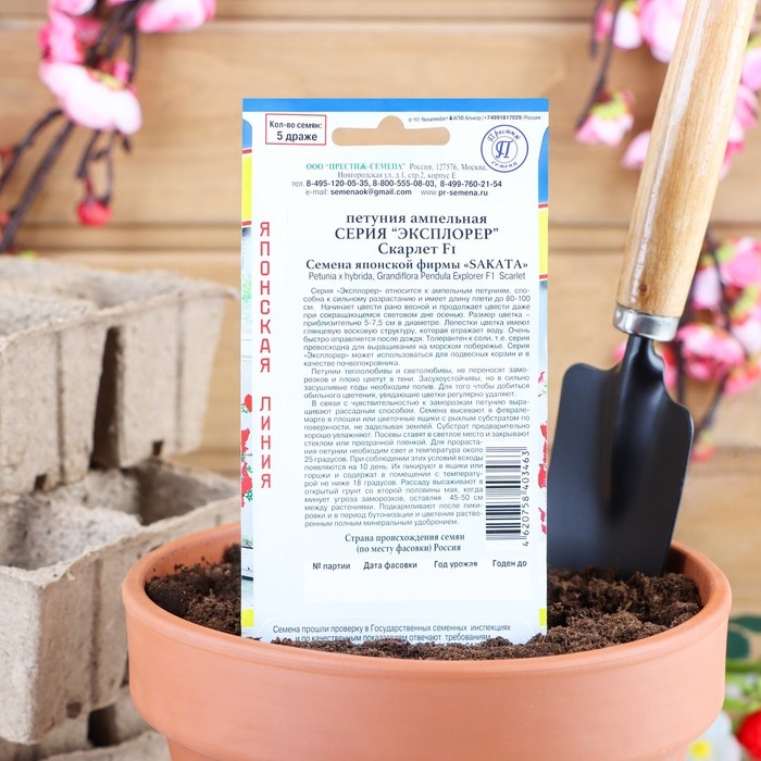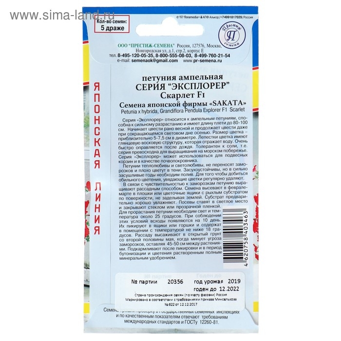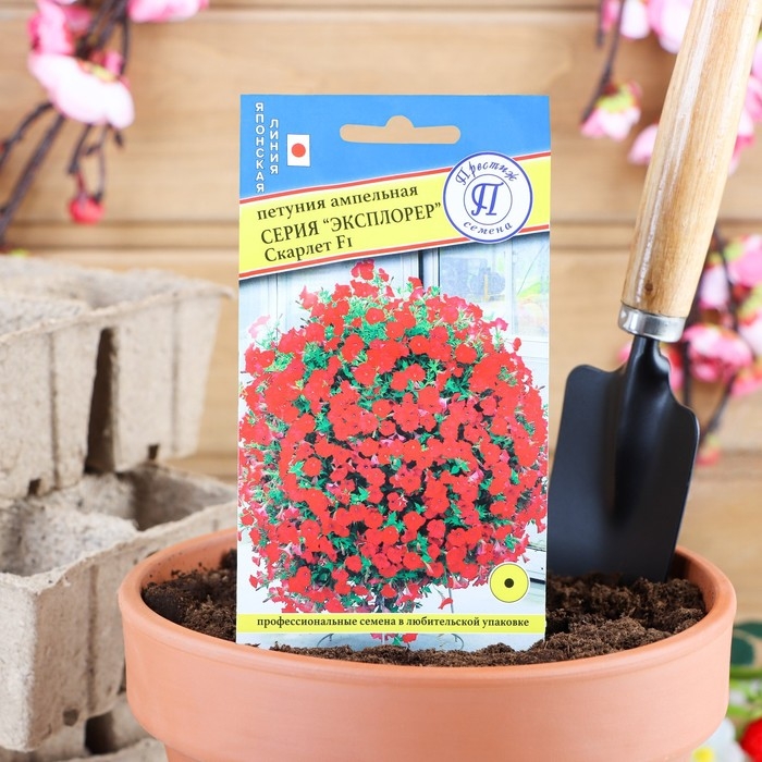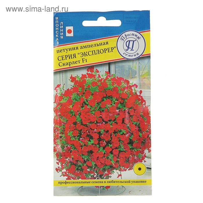 Семена цветов Петуния ампельная крупноцветковая"Эксплорер" Скарлет F1, О, драже 5 шт
