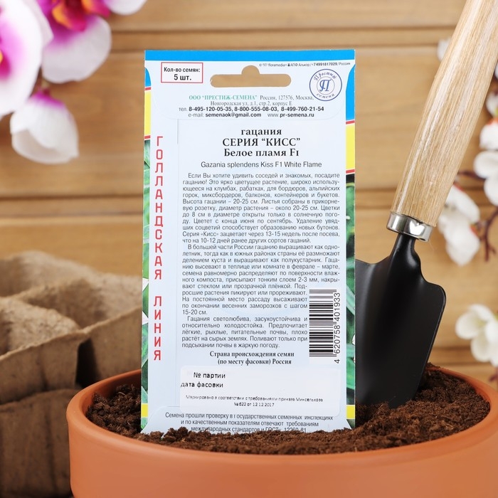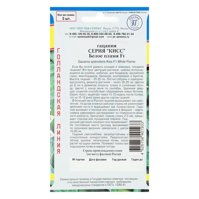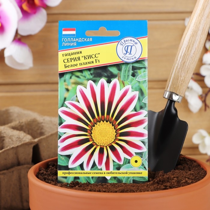 Семена цветов Гацания "Кисс" F1 Белое пламя, О, 5 шт