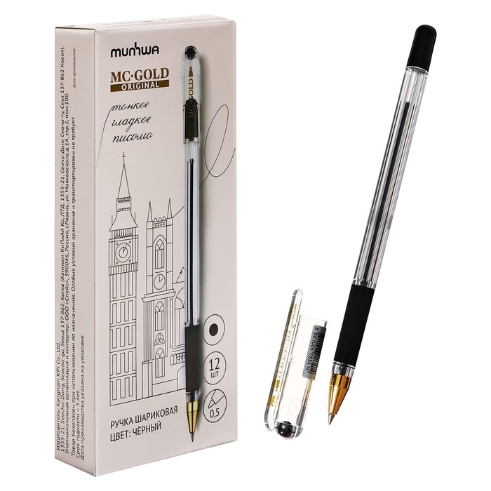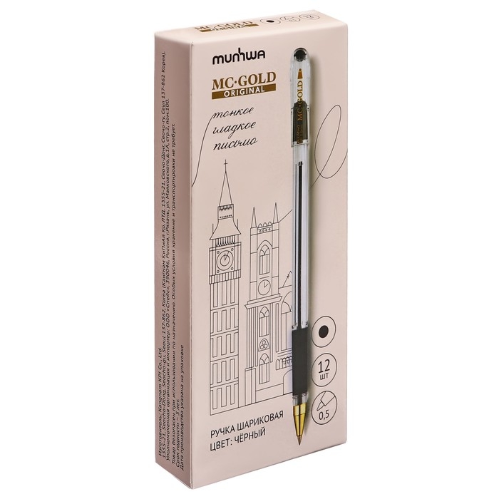 Ручка шариковая MunHwa MC Gold, узел 0,5 мм, чернила чёрные, штрихкод на ручке