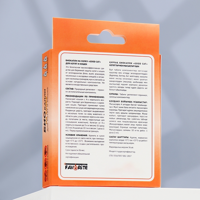 Безопасное высокоэффективное средство на основе натуральных компонентов для бережной защиты котят и кошек от эктопаразитов (блох, вшей, власоедов, чесоточных и иксодовых клещей) и летающих насекомых (комаров, мух и слепней).