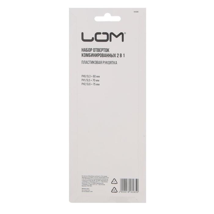 Набор отверток ЛОМ, 2 в 1, PH0/SL3 х 60 мм, PH1/SL5 х 70 мм, PH2/SL6 х 75 мм, 3 шт.