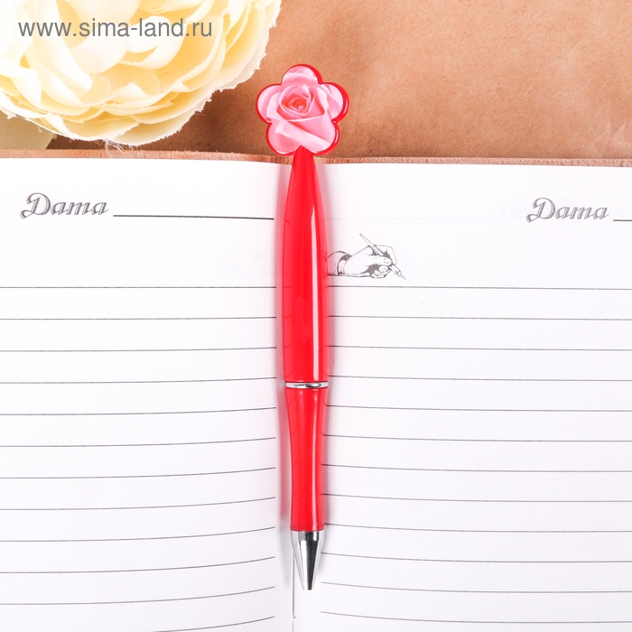 Ручка шариковая синяя паста, пластиковая с цветком "С 8 Марта"