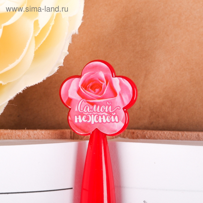Ручка шариковая синяя паста, пластиковая с цветком «С праздником 8 Марта»